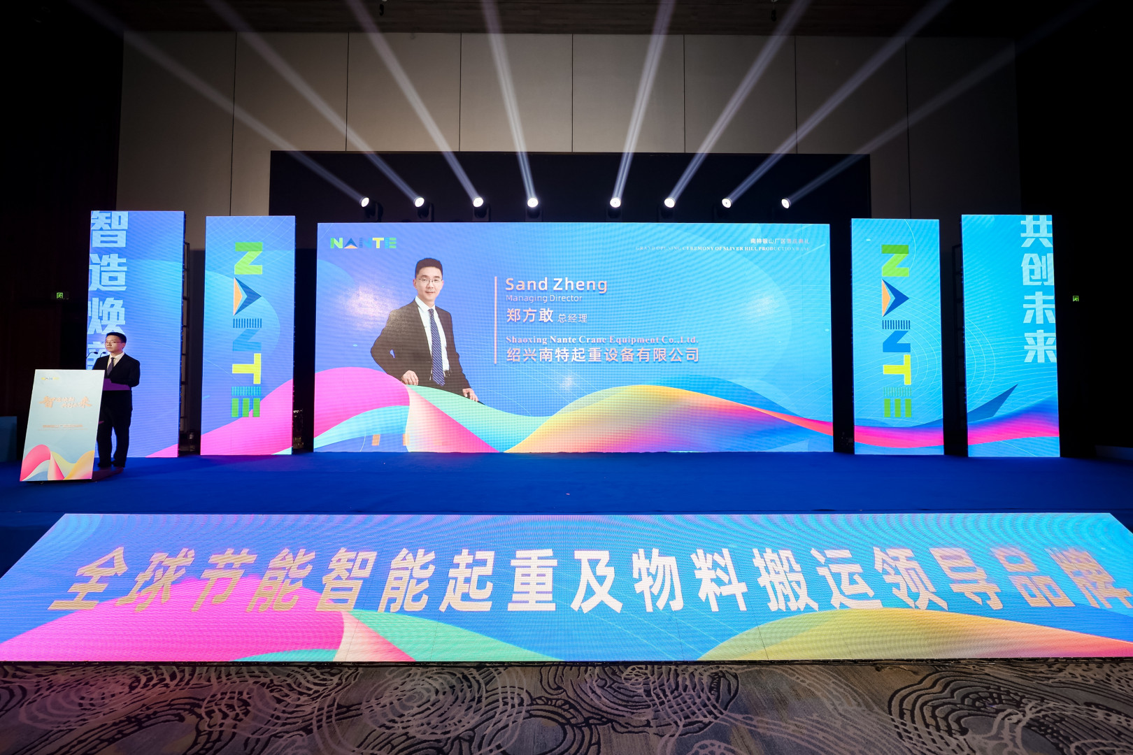 典礼伊始,绍兴南特起重设备有限公司总经理郑方敢先生登台发表了热情洋溢的致辞。他首先向当地政府、建设单位及所有幕后功臣致以崇高的敬意:
