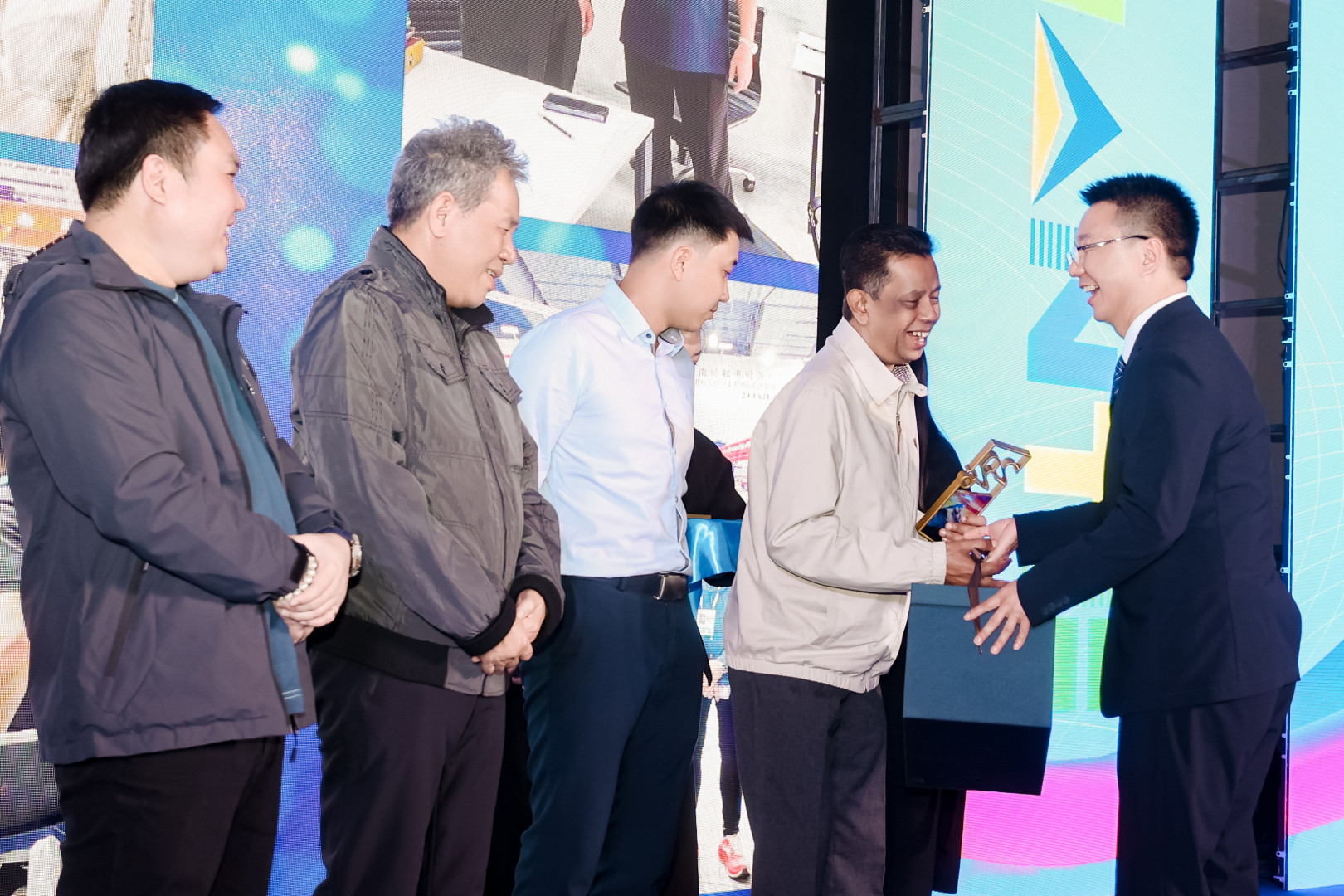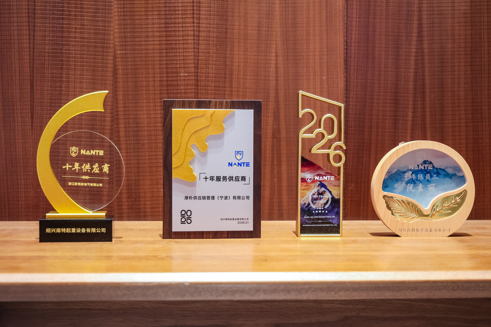 南特起重常务副总经理罗叙华先生为陪伴公司十年以上的核心供应商颁奖。这份表彰肯定了产业链协同的力量,是南特产品保持卓越品质的坚实后盾。
