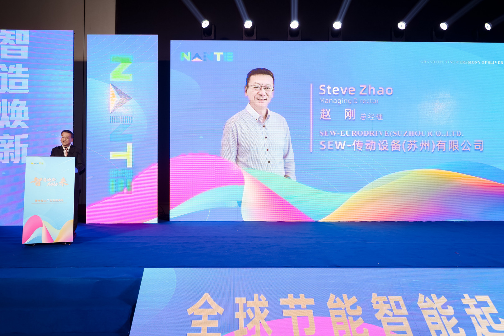 作为服务商代表,SEW苏州公司总经理赵刚先生发表了精彩致辞。他盛赞银山厂区的落成是南特迈向“智能化制造”新纪元的里程碑,并分享了双方合作的战略价值:“作为全球传动领域的领航者,SEW 始终坚持精品战略与本土化制造。我们与南特的深度合作,源于双方对‘高可靠性’与‘客户至上’理念的高度契合。随着南特银山智能工厂与 SEW 中国各大制造基地的协同联动,我们将通过全球统一的质量标准与智能驱动解决方案,全方位助力南特在产品质量、交付效率及用户体验上持续领先,共同打造中国起重行业现代化制造的标杆!”
