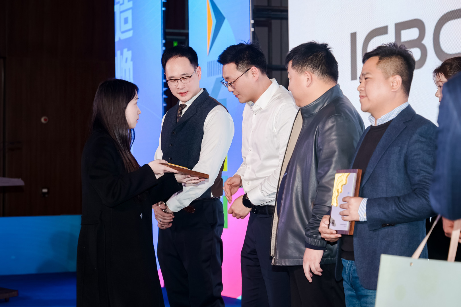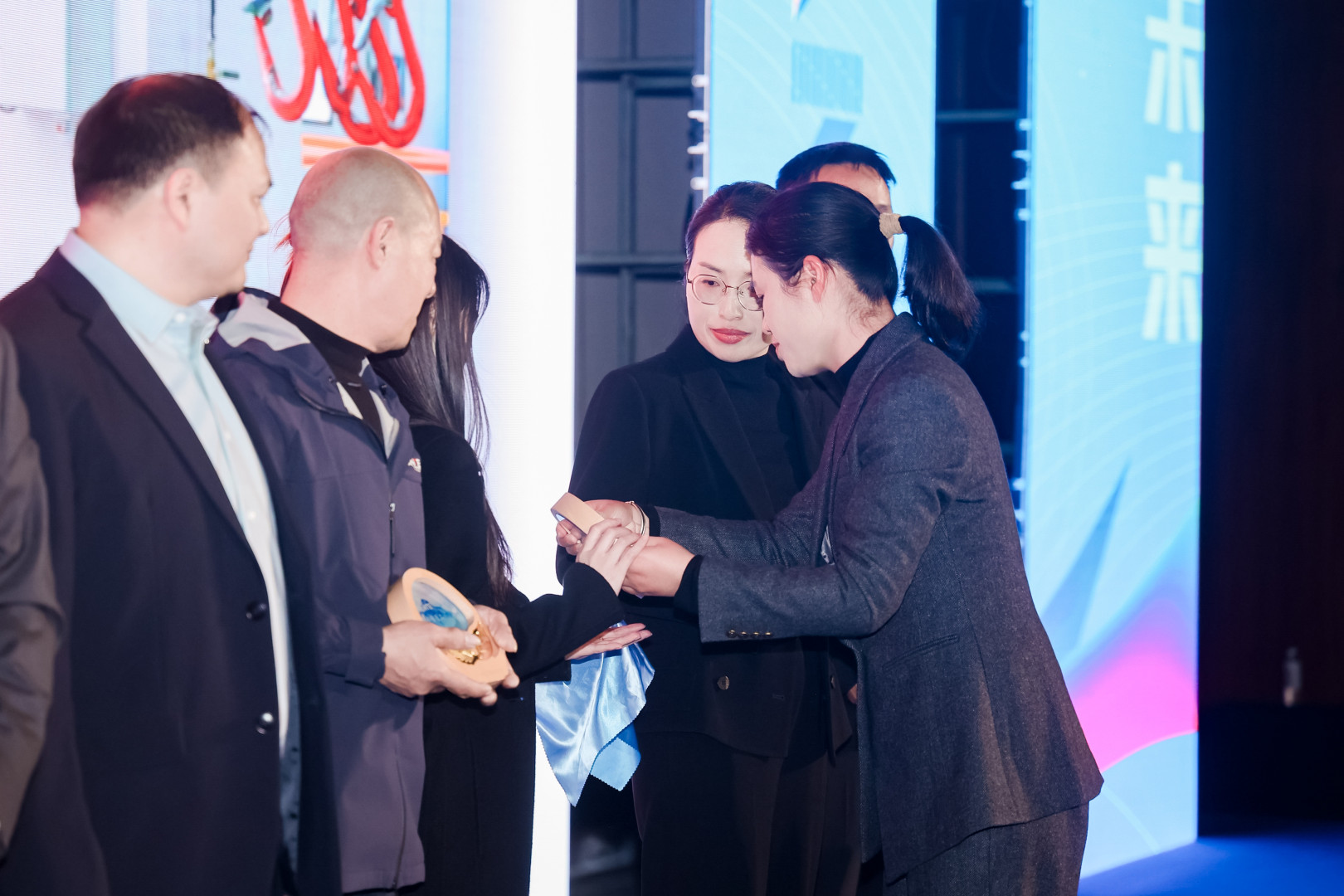 南特起重销售总监毛彩娟女士上台,为陪伴公司十年以上的服务商们颁发了纪念品和纪念杯,感谢他们在技术服务与市场协同上的卓越贡献。